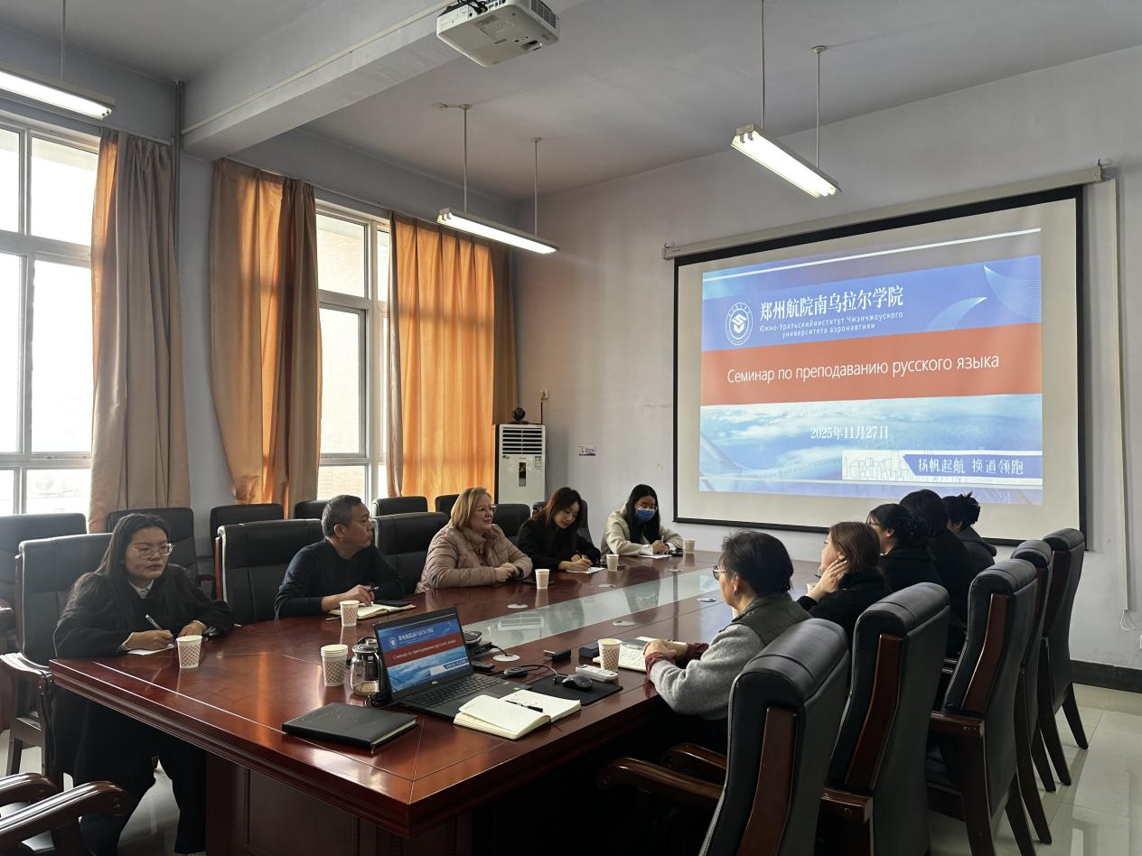 2025年11月27日上午,我院在07A410会议室举行俄语教学研讨会。副院长郑小东、柳德米拉・谢尔盖耶夫娜及我院全体俄语教师参加会议。
