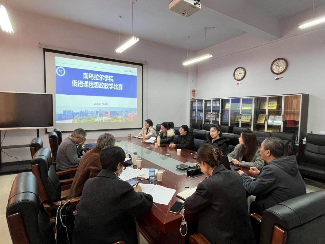 2025年12月4日,我院在07A410会议室成功举办第三届俄语课程思政教学比赛。副院长郑小东莅致开场辞,俄语教研室6名中方教师全员参与。本次活动特别邀请刘芳、孙德新、李玉玲三位校级教学督导专家担任评审。