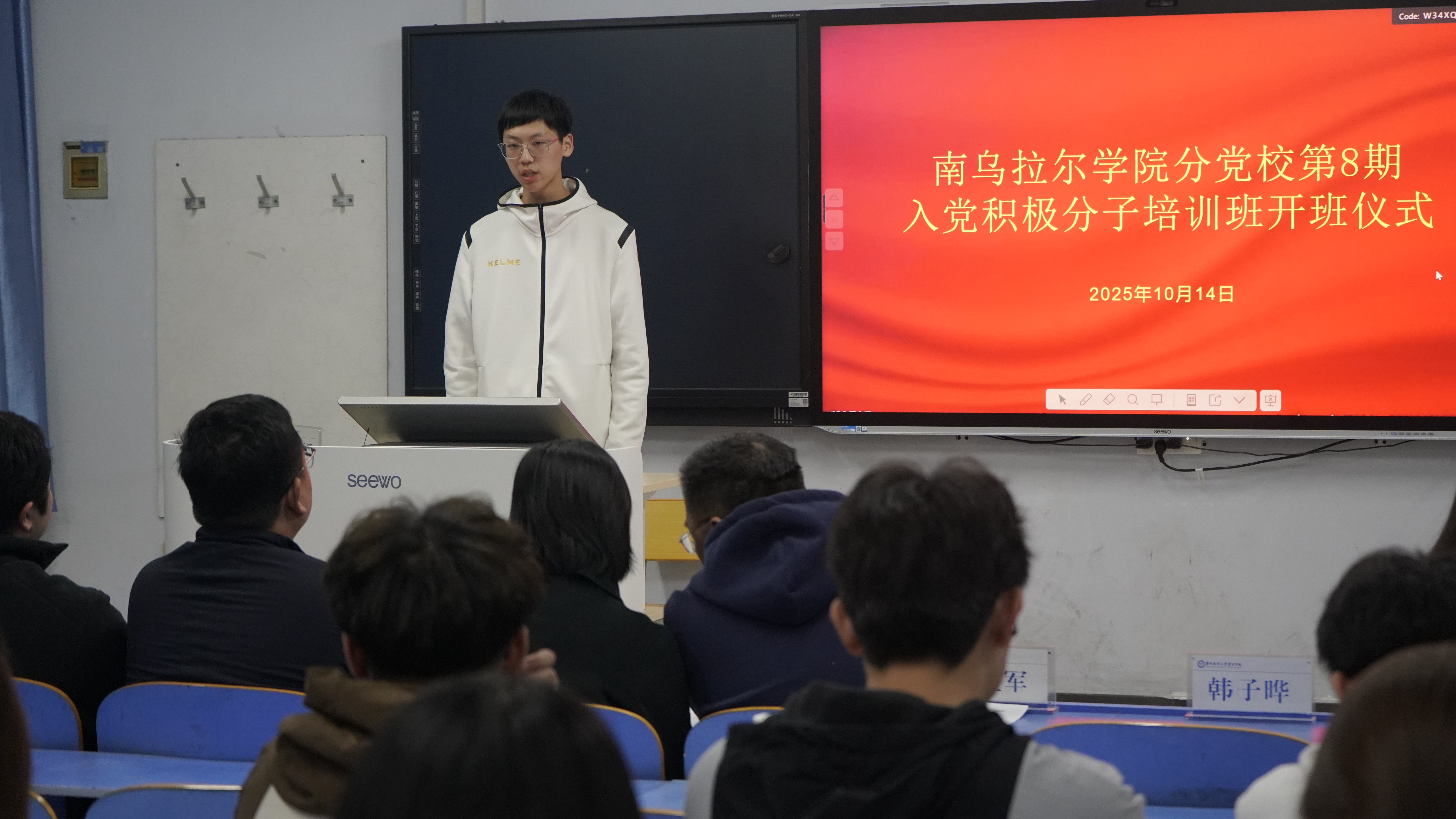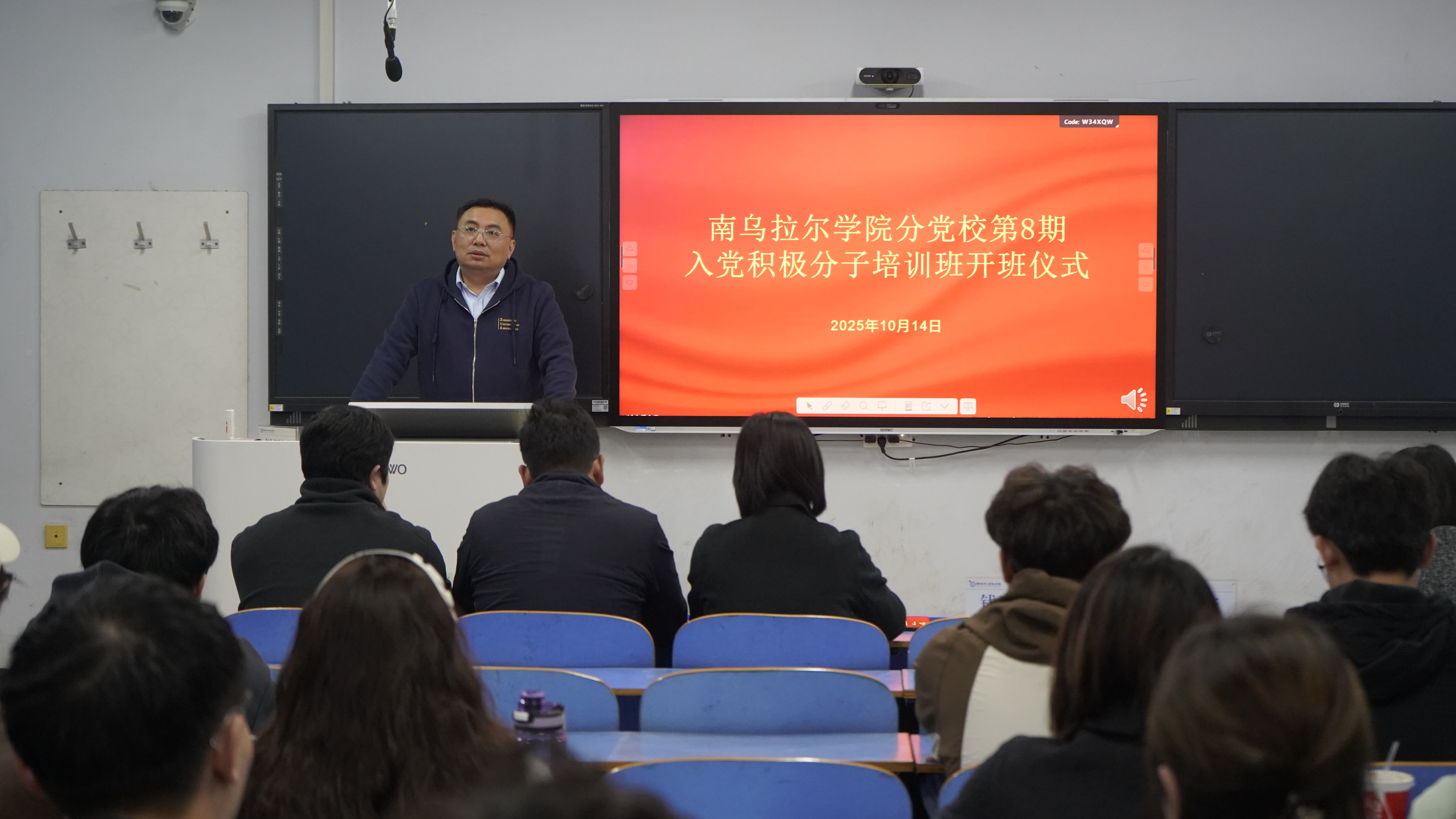 10月14日,南乌拉尔学院分党校第8期入党积极分子培训班开班仪式在07A302成功举行。我院党总支书记钱亚军、副书记李新平、各学生党支部书记及本期全体入党积极分子参加开班仪式,仪式由辅导员彭源源主持。