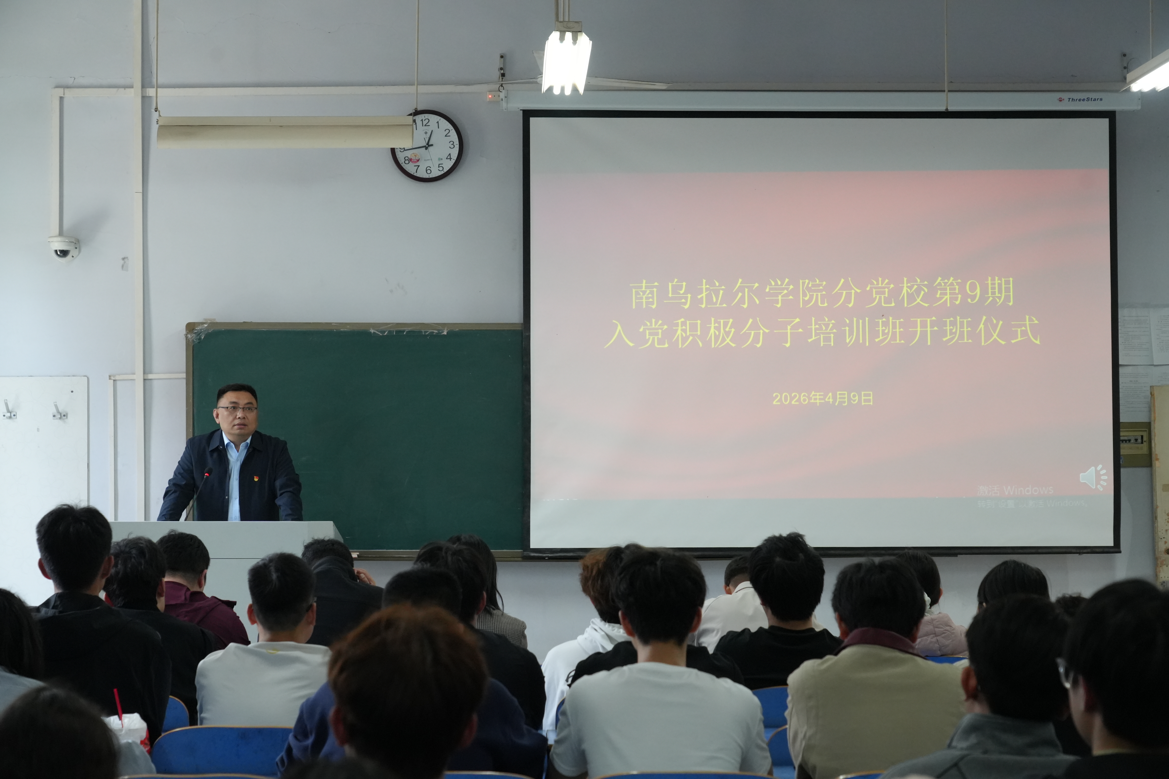 4月9日,南乌拉尔学院分党校第9期入党积极分子培训班开班仪式在07A303成功举行。我院党总支书记钱亚军、副书记李新平、各学生党支部书记及本期全体入党积极分子参加开班仪式,仪式由辅导员彭源源主持。开班仪式在庄严的国歌声中拉开帷幕。