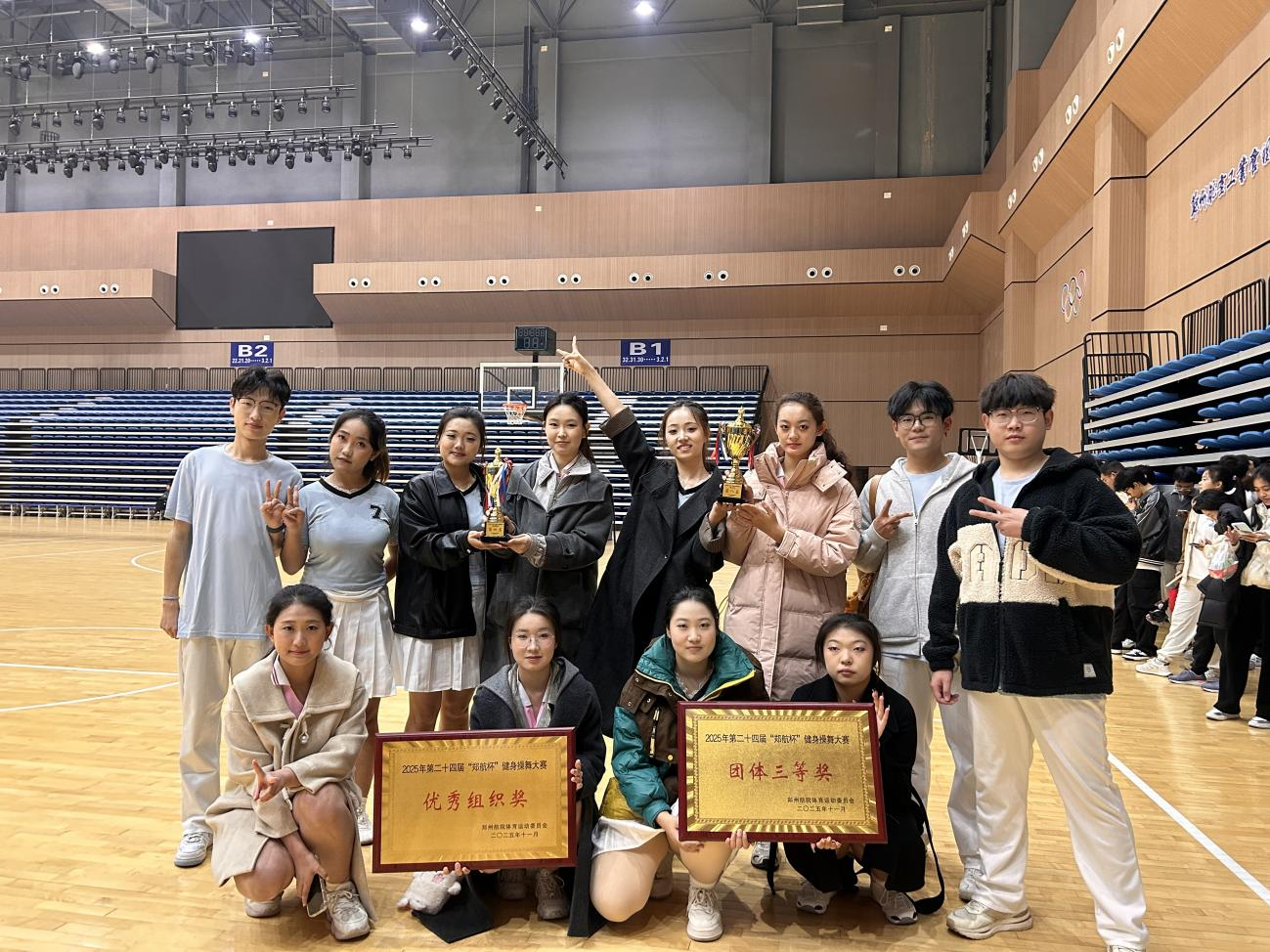 11月6日下午,郑州航院2025年第二十四届“郑航杯”健身操舞大赛在龙子湖校区体育馆(篮球馆)顺利举行。我院积极组织参赛,派出两支代表队共13名选手,在比赛中发挥出色,最终荣获团体三等奖与“优秀组织奖”两项荣誉。