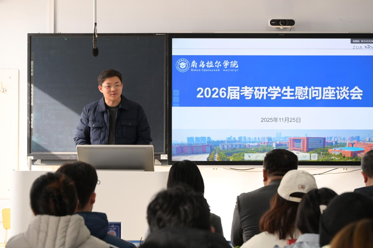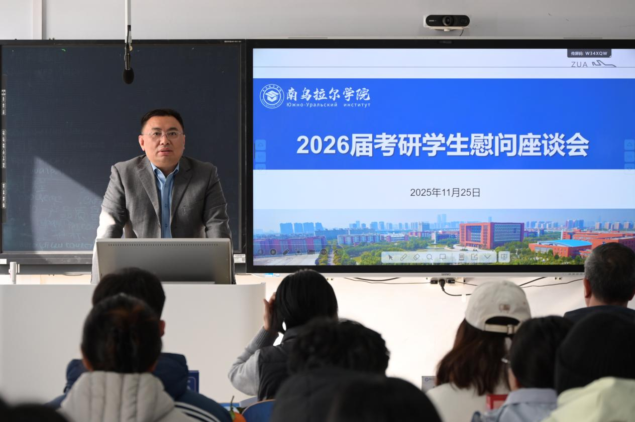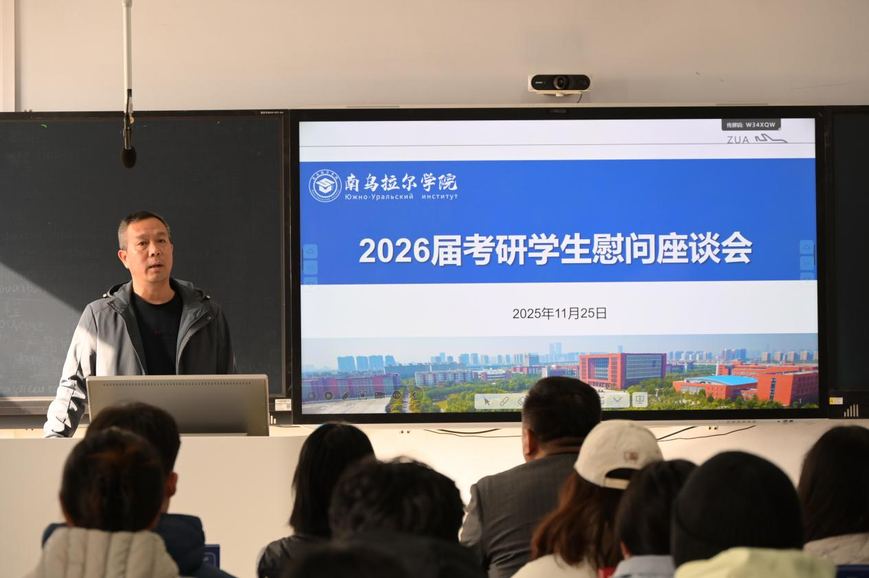 为鼓励即将踏上考研征程的学子们坚定信心、积极备考,11月25日,我院在07A302教室举办2026届考研学生慰问座谈会。院党总支书记钱亚军、党总支副书记李新平、副院长郑小东、2022级辅导员刘恕恕及2026届考研学生代表参加座谈。座谈会由学工办主任韩子晔主持。