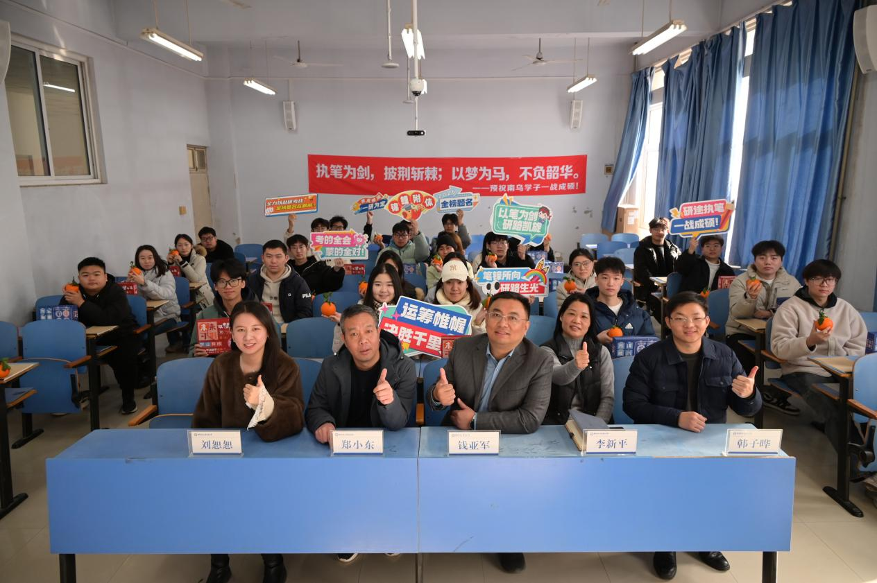 钱亚军在总结讲话中深情回顾了同学们备考以来的辛勤付出,并送上真诚寄语:一要坚定必胜信心,保持“舍我其谁”的昂扬斗志;二要科学安排时间,做到劳逸结合,始终保持最佳状态;三要维持平和心态,沉着冷静,学会与压力共处,以平常心看待考试。他表示,学院始终是同学们的坚强后盾,并衷心祝愿大家心想事成、金榜题名、成功“上岸”!