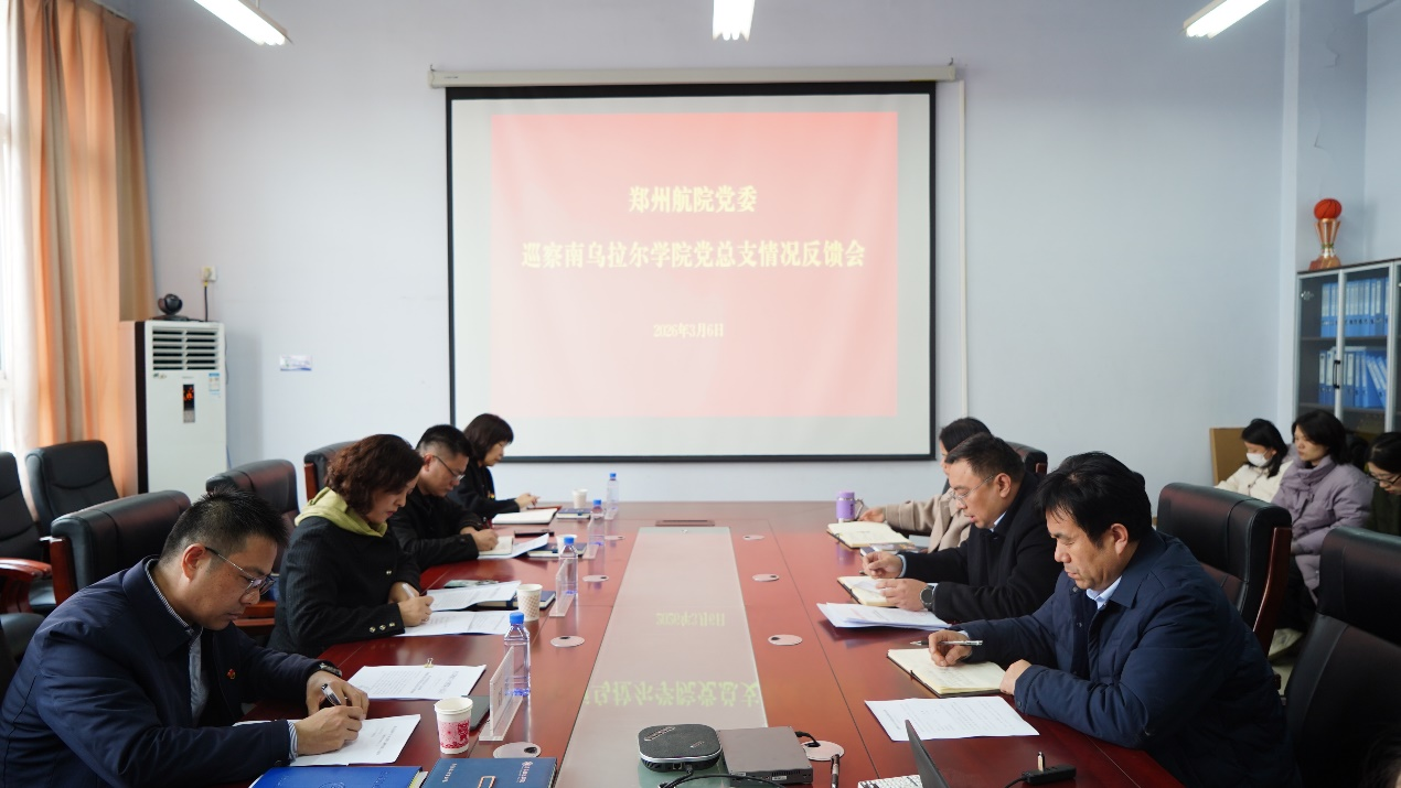 3月6日,校党委巡察南乌拉尔学院党总支情况反馈会在07A410会议室召开。副校长陈静、党委巡察办公室主任郑毅、第二巡察组组长刘儒、副组长耿三琳,学院全体教职工参加会议。会议由南乌拉尔学院院长谢晓鹏主持。