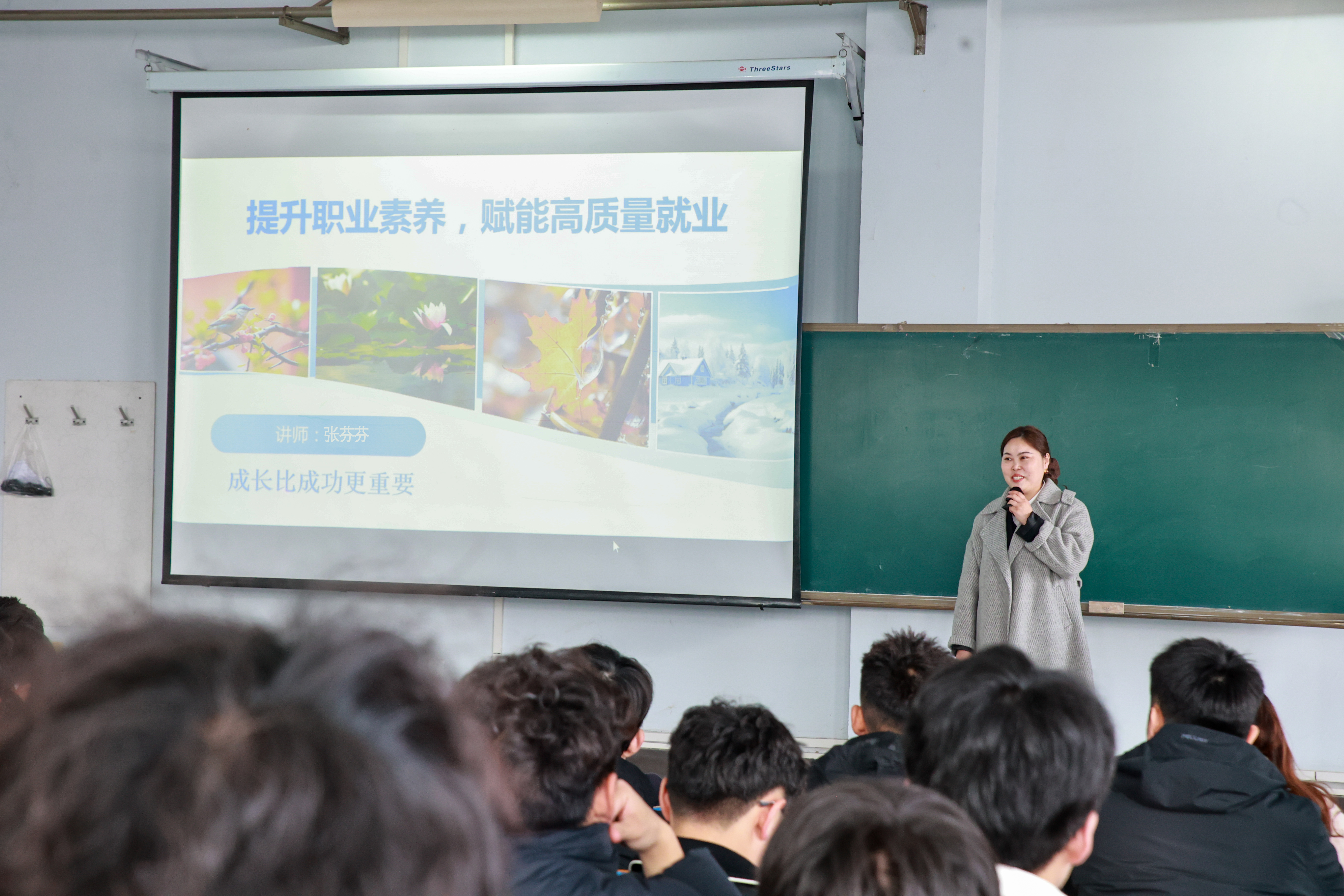 张芬芬结合自身经历,从心理学视角提出“人是不完美的、世界是不确定的、时间是不可逆转的”人生三大真相,剖析了当代大学生面临的学业、人际、家庭期望等六大成长问题。面对严峻的毕业生就业形势,她围绕就业认知、职业素养、求职实践、就业选择四大板块,通过“就业体检报告”等互动形式,帮助同学们打破“钱多事少离家近”的幻想,明确自身短板。