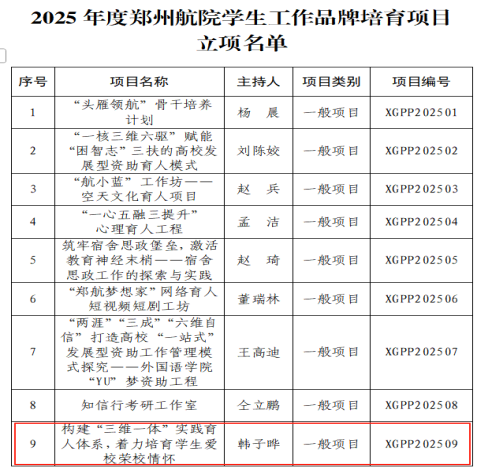 4.南乌拉尔学院3名教师主持郑州航院校级教育教学改革研究与实践项目。