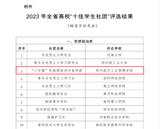 12.南乌拉尔学院“小石榴”民族团结进步宣讲团荣获河南省思想政治类“十佳学生社团”。