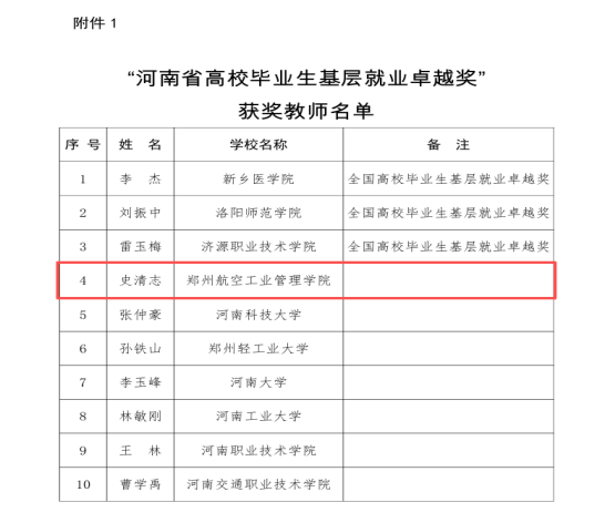 18. 南乌拉尔学院班主任史清志荣获河南省高校毕业生基层就业卓越奖