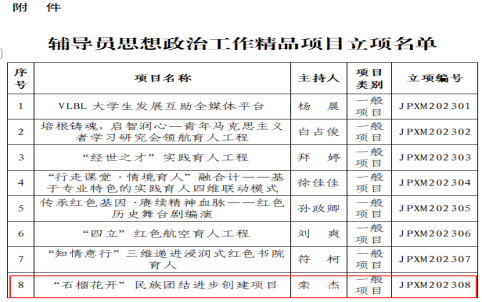 8.我校民族团结进步育人项目获评全省高校思想政治工作优秀品牌。
